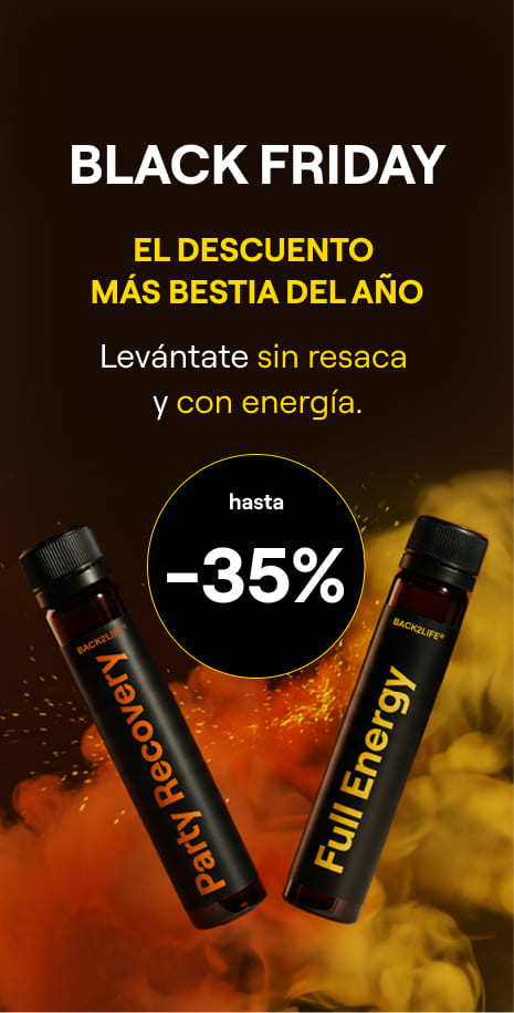 El vida esta para vivirla de día. Pero también de noche. Por suerte, gracias a BACK2LIFE no tendrás que renunciar a ninguna de las dos, ya que nuestra fórmula natural y bebible te ayudará a aliviar los síntomas de resaca. Porque hoy es hoy. Y ayer ya fue.